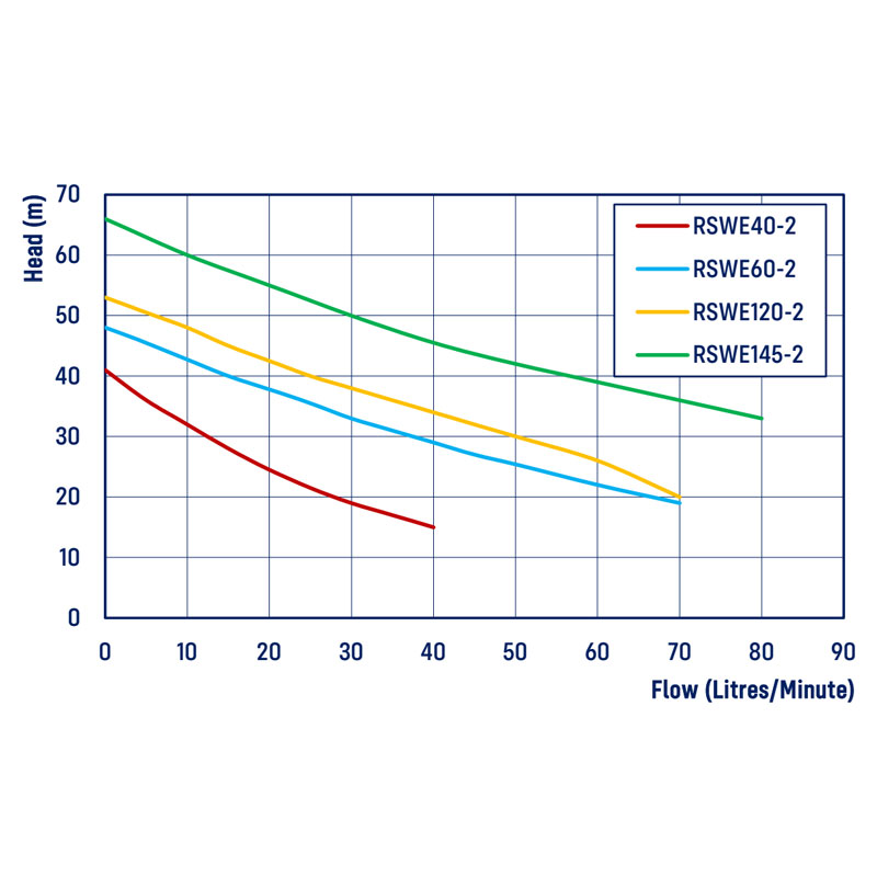 The RSWE-2 series is 100% European made and features continuous rated motors for long service life. It is available in multiple configurations including pump only, automatic pressure controller (PC), and pressure switch with tank and gauge (PTS). Construction includes a cast iron motor bracket and pump body, a Noryl venturi, Grade 416 stainless steel shaft, built-in thermal overload protection, ceramic/graphite mechanical seal, and Noryl impellers on RSWE40-2, RSWE60-2 and RSWE120-2.